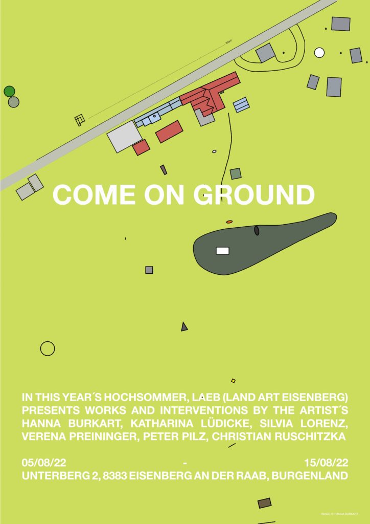 Im diesjährigen Hochsommer präsentiert Land Art Eisenberg Werke und Interventionen der Künstlerinnen Hanna Burkart, Katharina Lüdicke, Silvia Lorenz und Verena Preininger. Ihr Projekt COME ON GROUND zeigt unterschiedliche Positionen, die durch langfristige Beschäftigungen mit den Gegebenheiten vor Ort entstanden.