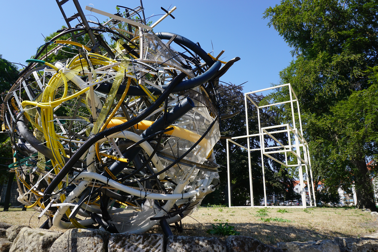 Silvia Lorenz und Peter Pilz, “cage/uncage”, 2016, Innenhof Burchardikloster, 2. MKH Biennale Halberstadt