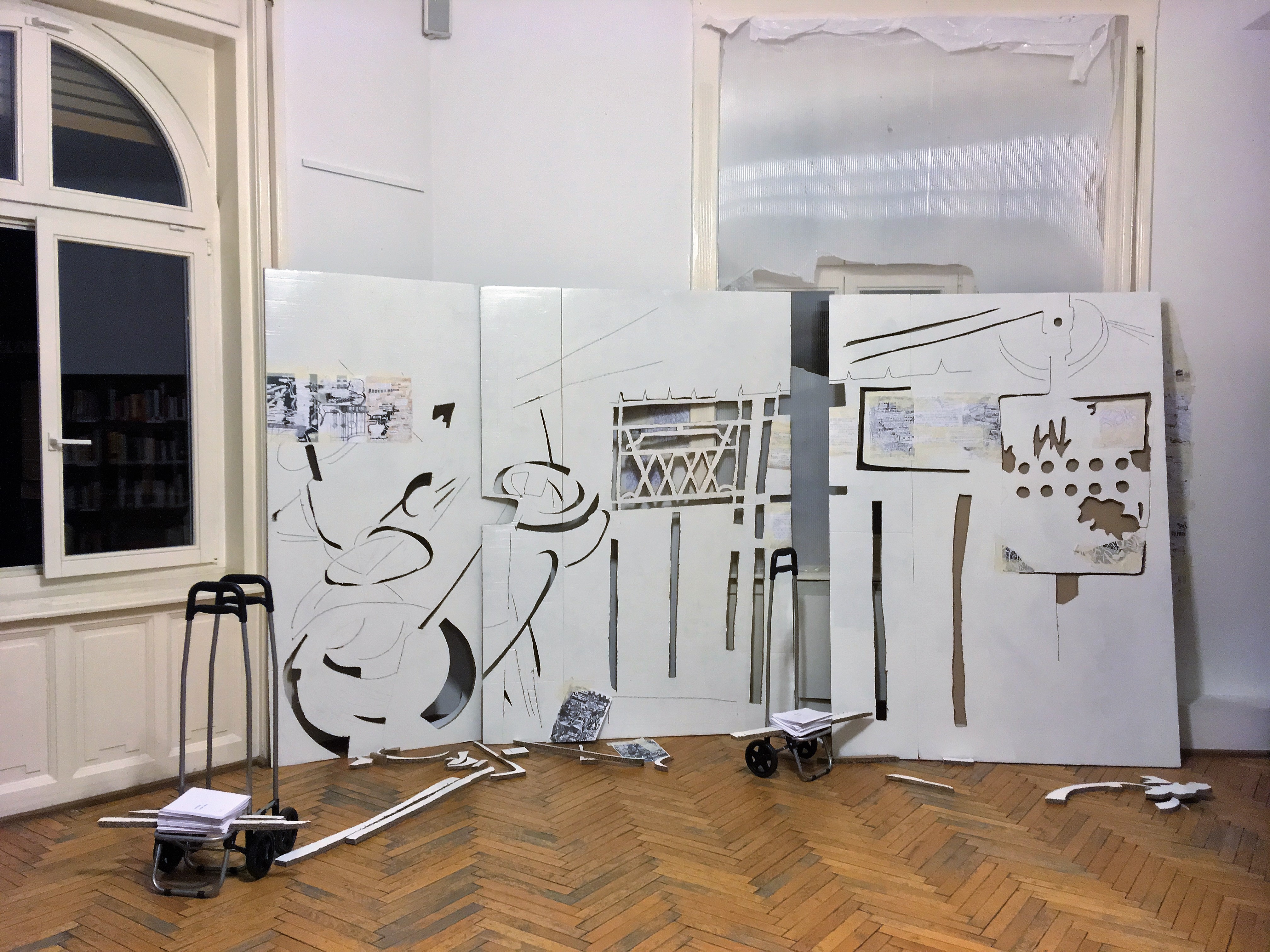 “wind of change”, 2019, Innenhof Atelierhaus Mengerzeile, Berlin-Neukölln // “Zaun” 2019, Deutsches Kulturzentrum Timisoara, Rumänien // “Wand”, 2018, Ausstellungsraum der IG Metall Berlin